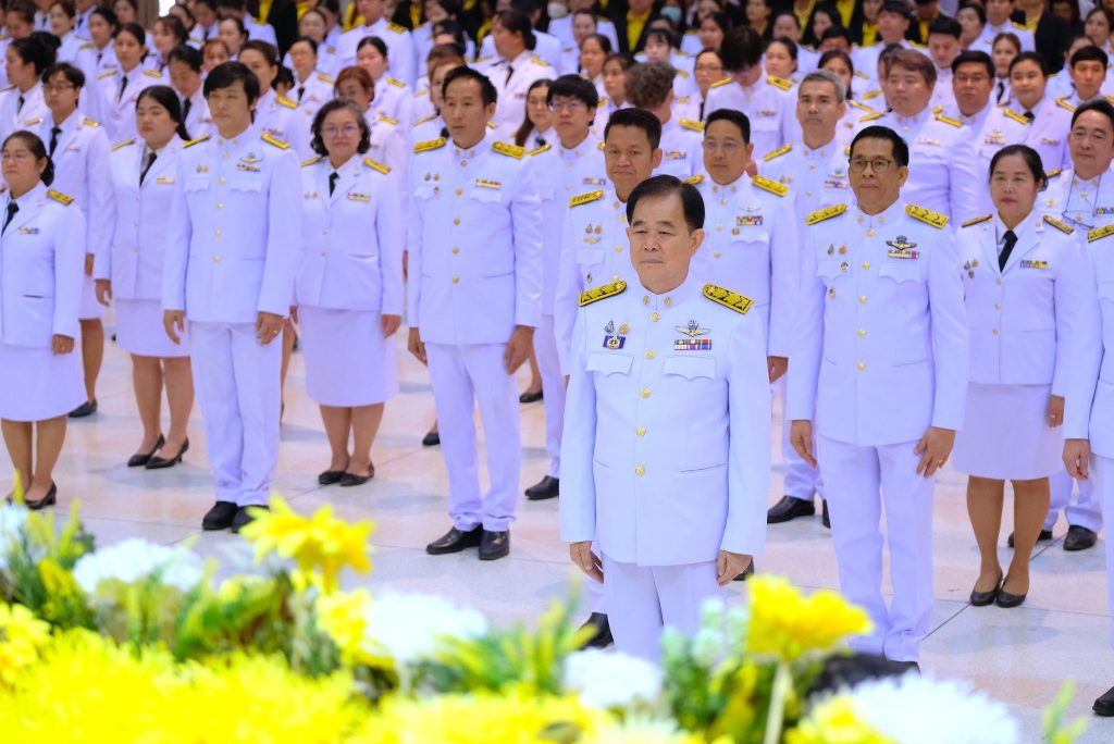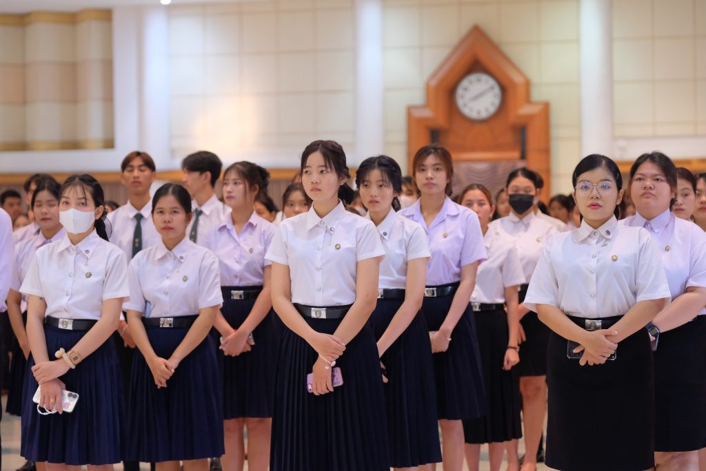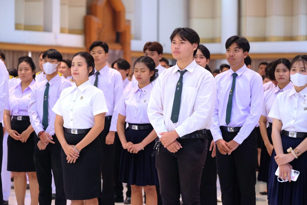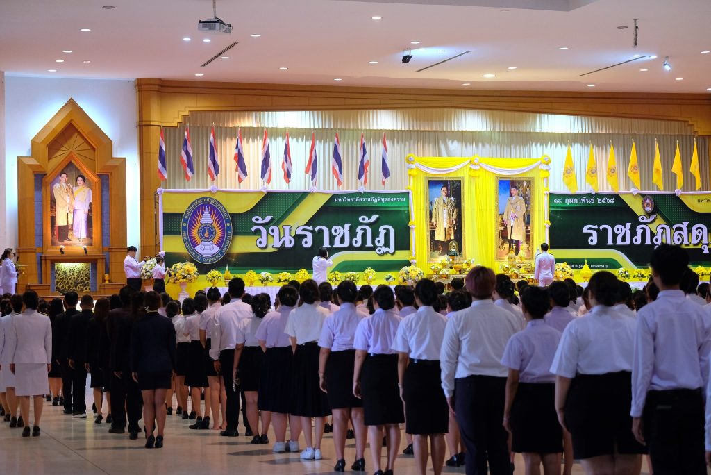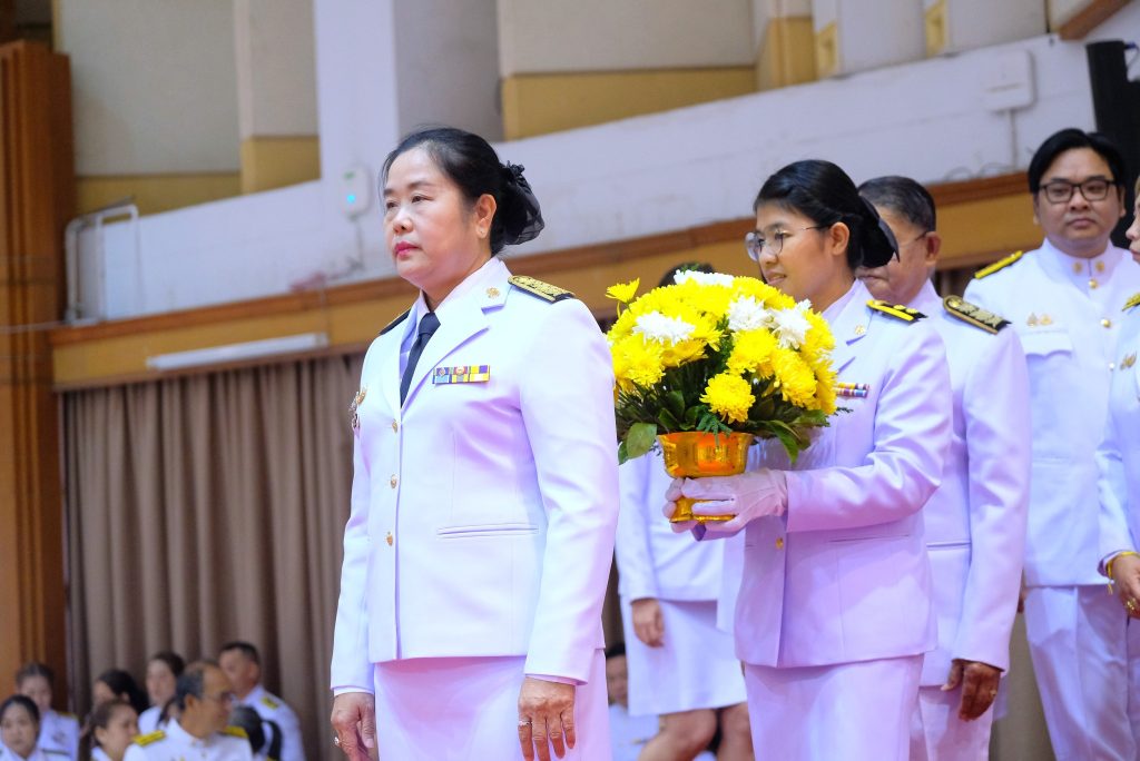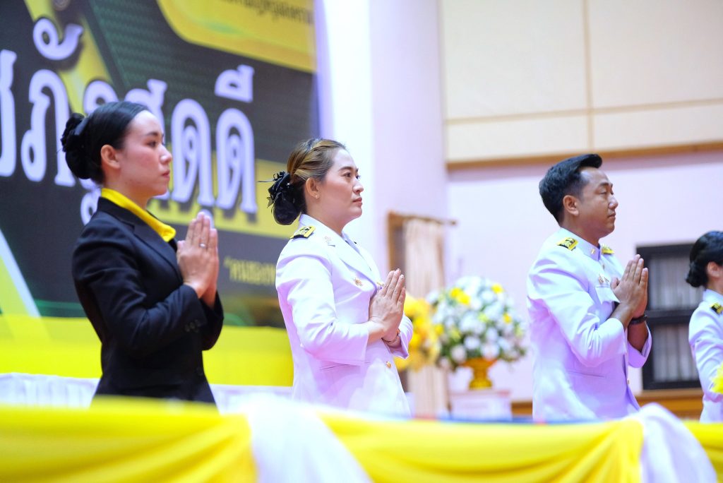 ผศ.ดร.ชุมพล เสมาขันธ์ อธิการบดี กล่าวในพิธีการว่า คณะผู้บริหาร ข้าราชการ บุคลากร นักศึกษา ที่มาชุมนุมพร้อมเพรียงกัน ณ ที่แห่งนี้ ต่างน้อมจิตตั้งมั่นเพื่อร่วมกันแสดงออกถึงความจงรักภักดี และน้อมรำลึกถึงพระมหากรุณาธิคุณอันหาที่สุดมิได้ของพระบาทสมเด็จ พระบรมชนกาธิเบศรมหาภูมิพลอดุลยเดชมหาราช บรมนาถบพิตร ที่ทรงพระกรุณาโปรดเกล้าฯ พระราชทานนามวิทยาลัยครูใหม่ว่า “สถาบันราชภัฏ” อันมีความหมายว่า “คนของพระราชา” เมื่อวันที่ 14 กุมภาพันธ์ พ.ศ. 2535 ต่อมาเมื่อวันที่ 6 มีนาคม พ.ศ. 2538 ได้ทรงพระกรุณาโปรดเกล้าฯ พระราชทานตราพระราชลัญจกร ซึ่งเป็นตราประจำพระองค์ให้เป็นตราสัญลักษณ์ประจำสถาบันราชภัฏทั่วประเทศ วันที่ 14 มิถุนายน พ.ศ. 2547 พระราชบัญญัติมหาวิทยาลัยราชภัฏได้ประกาศในราชกิจจานุเบกษา เล่ม 121 ตอนพิเศษ 23 ก มีผลบังคับใช้เมื่อวันที่ 15 มิถุนายน พ.ศ. 2547 ทำให้สถาบันราชภัฏทั่วประเทศ เปลี่ยนชื่อเป็น “มหาวิทยาลัยราชภัฏ” ตลอดระยะเวลากว่า 70 ปี แห่งรัชสมัยพระบาทสมเด็จ พระบรมชนกาธิเบศร มหาภูมิพลอดุลยเดชมหาราช บรมนาถบพิตร ปวงข้าพระพุทธเจ้า ต่างประจักษ์ซึ้งในพระมหากรุณาธิคุณ และพระเมตตาที่ได้ทรงทุ่มเทกําลังพระวรกายและพระสติปัญญา ทรงปฏิบัติพระราชกรณียกิจนานัปการเพื่อประโยชน์สุขแห่งปวงพสกนิกร โครงการในพระราชดําริน้อยใหญ่ กว่า 4,000 โครงการ เป็นที่ประจักษ์ถึงพระวิริยะอุตสาหะในการทุ่มเทพระวรกายเพื่อขจัดความทุกข์ยาก และแก้ปัญหาความเดือดร้อนของประชาชน ก่อให้เกิดประโยชน์อย่างอเนกอนันต์แก่ประเทศชาติ ได้พระราชทานหลักในการดำเนินชีวิต ทั้งปรัชญาของเศรษฐกิจพอเพียง พระบรมราโชวาท และพระดำรัสที่พระราชทานในโอกาสต่าง ๆ เพื่อเป็นแนวทางให้อาณาประชาราษฎร์ยึดถือปฏิบัติ และเป็นภูมิคุ้มกันให้สามารถดำเนินชีวิตได้อย่างมั่นคงพร้อมรับการเปลี่ยนแปลงที่เกิดขึ้นในสังคมโลกปัจจุบัน อีกทั้งยังก่อให้เกิดประโยชน์แก่ประชาชนของประเทศต่าง ๆ ที่ได้น้อมนําแนวทางพระราชทานไปปฏิบัติ พระเกียรติคุณแผ่ไพศาล ขจรขจายไปทั่วทิศานุทิศ แม้ว่าพระองค์จะเสด็จสวรรคตสู่สวรรคาลัยไปแล้ว แต่พระองค์ยังทรงเป็นพระมหากษัตริย์ผู้ทรงพระคุณอันประเสริฐ ทรงได้รับการทูลเกล้าทูลกระหม่อม ถวายพระราชสมัญญา พระบิดาแห่งศาสตร์ 9 แขนง ประกอบด้วย พระบิดาแห่งการจัดการน้ำ พระบิดาแห่งเทคโนโลยีของไทย พระบิดาแห่งฝนหลวง พระบิดาแห่งนวัตกรรมไทย พระบิดาแห่งการประดิษฐ์ไทย พระบิดาแห่งการอนุรักษ์มรดกไทย พระบิดาแห่งการวิจัยไทย พระบิดาแห่งมาตรฐานช่างไทย และพระบิดาแห่งการวิ