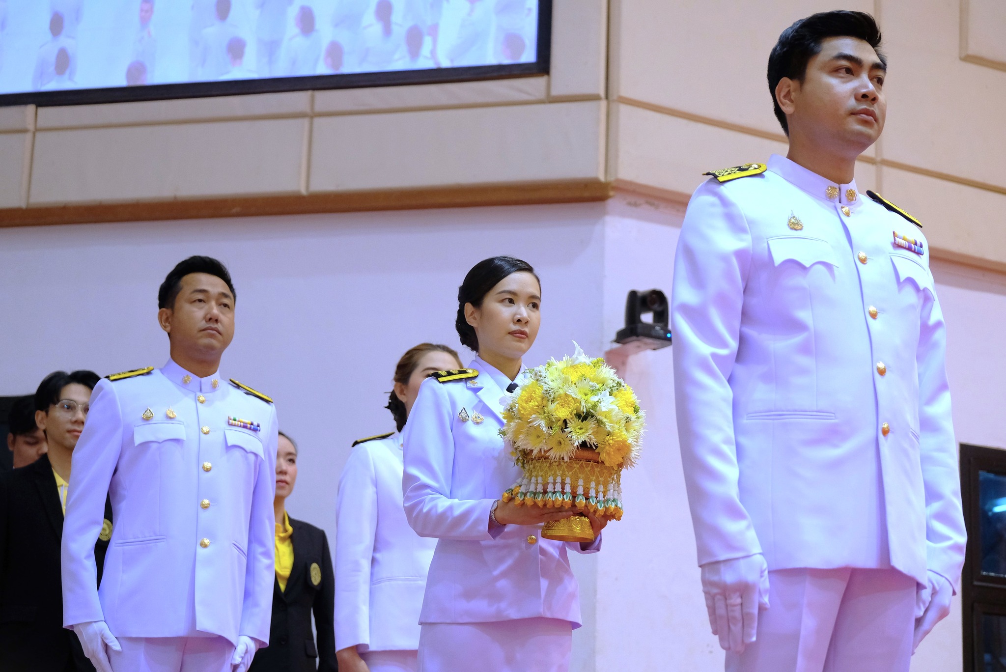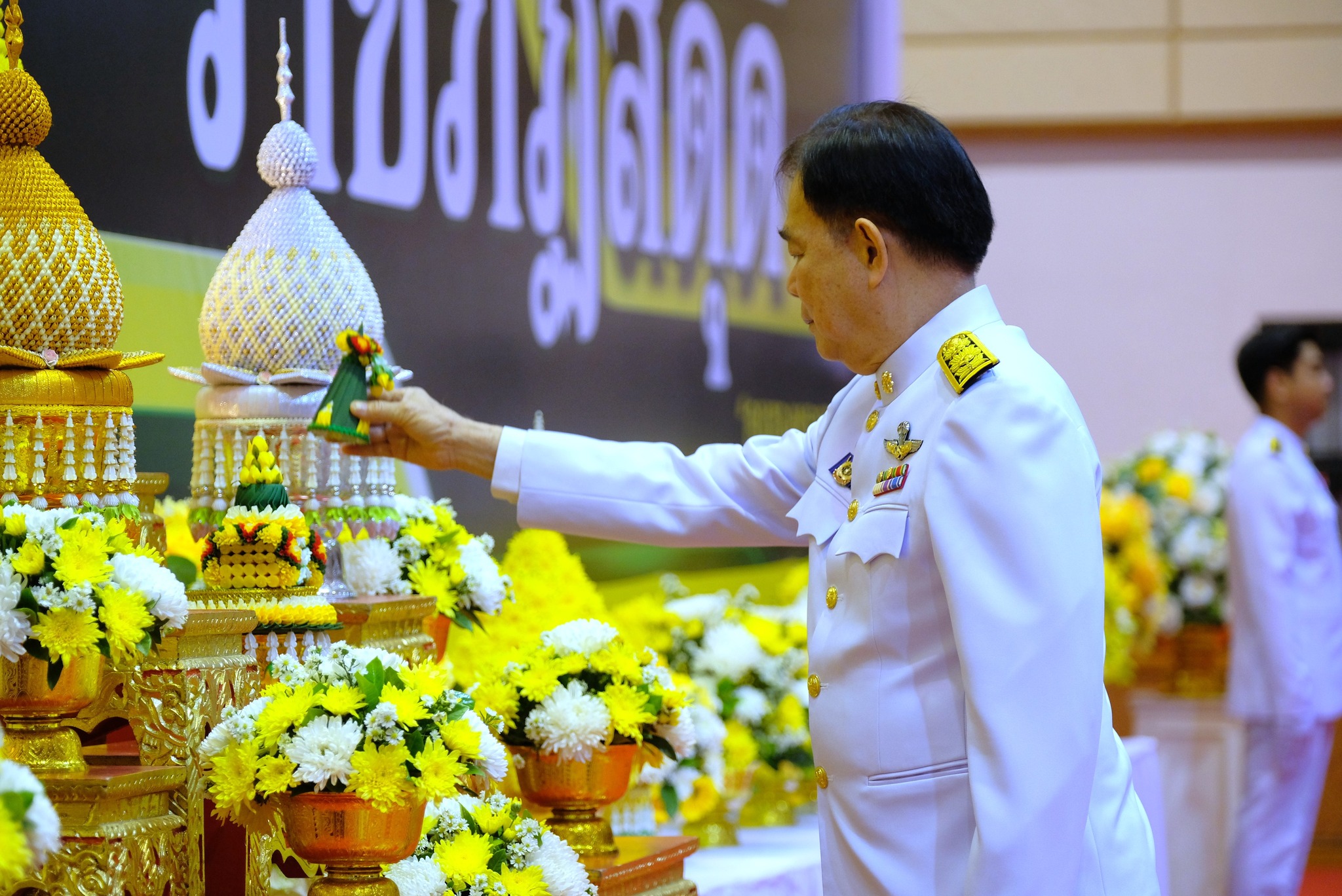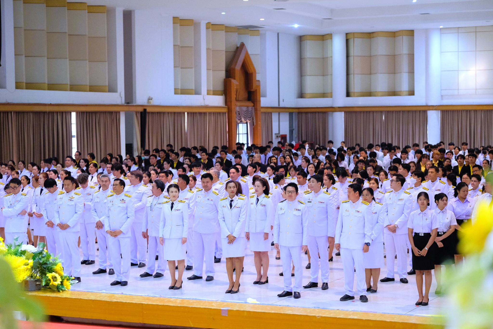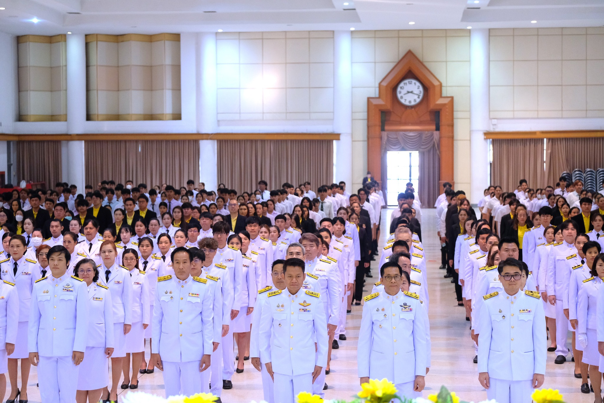 ผศ.ดร.ชุมพล เสมาขันธ์ อธิการบดี กล่าวในพิธีการว่า คณะผู้บริหาร ข้าราชการ บุคลากร นักศึกษา ที่มาชุมนุมพร้อมเพรียงกัน ณ ที่แห่งนี้ ต่างน้อมจิตตั้งมั่นเพื่อร่วมกันแสดงออกถึงความจงรักภักดี และน้อมรำลึกถึงพระมหากรุณาธิคุณอันหาที่สุดมิได้ของพระบาทสมเด็จ พระบรมชนกาธิเบศรมหาภูมิพลอดุลยเดชมหาราช บรมนาถบพิตร ที่ทรงพระกรุณาโปรดเกล้าฯ พระราชทานนามวิทยาลัยครูใหม่ว่า “สถาบันราชภัฏ” อันมีความหมายว่า “คนของพระราชา” เมื่อวันที่ 14 กุมภาพันธ์ พ.ศ. 2535 ต่อมาเมื่อวันที่ 6 มีนาคม พ.ศ. 2538 ได้ทรงพระกรุณาโปรดเกล้าฯ พระราชทานตราพระราชลัญจกร ซึ่งเป็นตราประจำพระองค์ให้เป็นตราสัญลักษณ์ประจำสถาบันราชภัฏทั่วประเทศ วันที่ 14 มิถุนายน พ.ศ. 2547 พระราชบัญญัติมหาวิทยาลัยราชภัฏได้ประกาศในราชกิจจานุเบกษา เล่ม 121 ตอนพิเศษ 23 ก มีผลบังคับใช้เมื่อวันที่ 15 มิถุนายน พ.ศ. 2547 ทำให้สถาบันราชภัฏทั่วประเทศ เปลี่ยนชื่อเป็น “มหาวิทยาลัยราชภัฏ” ตลอดระยะเวลากว่า 70 ปี แห่งรัชสมัยพระบาทสมเด็จ พระบรมชนกาธิเบศร มหาภูมิพลอดุลยเดชมหาราช บรมนาถบพิตร ปวงข้าพระพุทธเจ้า ต่างประจักษ์ซึ้งในพระมหากรุณาธิคุณ และพระเมตตาที่ได้ทรงทุ่มเทกําลังพระวรกายและพระสติปัญญา ทรงปฏิบัติพระราชกรณียกิจนานัปการเพื่อประโยชน์สุขแห่งปวงพสกนิกร โครงการในพระราชดําริน้อยใหญ่ กว่า 4,000 โครงการ เป็นที่ประจักษ์ถึงพระวิริยะอุตสาหะในการทุ่มเทพระวรกายเพื่อขจัดความทุกข์ยาก และแก้ปัญหาความเดือดร้อนของประชาชน ก่อให้เกิดประโยชน์อย่างอเนกอนันต์แก่ประเทศชาติ ได้พระราชทานหลักในการดำเนินชีวิต ทั้งปรัชญาของเศรษฐกิจพอเพียง พระบรมราโชวาท และพระดำรัสที่พระราชทานในโอกาสต่าง ๆ เพื่อเป็นแนวทางให้อาณาประชาราษฎร์ยึดถือปฏิบัติ และเป็นภูมิคุ้มกันให้สามารถดำเนินชีวิตได้อย่างมั่นคงพร้อมรับการเปลี่ยนแปลงที่เกิดขึ้นในสังคมโลกปัจจุบัน อีกทั้งยังก่อให้เกิดประโยชน์แก่ประชาชนของประเทศต่าง ๆ ที่ได้น้อมนําแนวทางพระราชทานไปปฏิบัติ พระเกียรติคุณแผ่ไพศาล ขจรขจายไปทั่วทิศานุทิศ แม้ว่าพระองค์จะเสด็จสวรรคตสู่สวรรคาลัยไปแล้ว แต่พระองค์ยังทรงเป็นพระมหากษัตริย์ผู้ทรงพระคุณอันประเสริฐ ทรงได้รับการทูลเกล้าทูลกระหม่อม ถวายพระราชสมัญญา พระบิดาแห่งศาสตร์ 9 แขนง ประกอบด้วย พระบิดาแห่งการจัดการน้ำ พระบิดาแห่งเทคโนโลยีของไทย พระบิดาแห่งฝนหลวง พระบิดาแห่งนวัตกรรมไทย พระบิดาแห่งการประดิษฐ์ไทย พระบิดาแห่งการอนุรักษ์มรดกไทย พระบิดาแห่งการวิจัยไทย พระบิดาแห่งมาตรฐานช่างไทย และพระบิดาแห่งการวิ