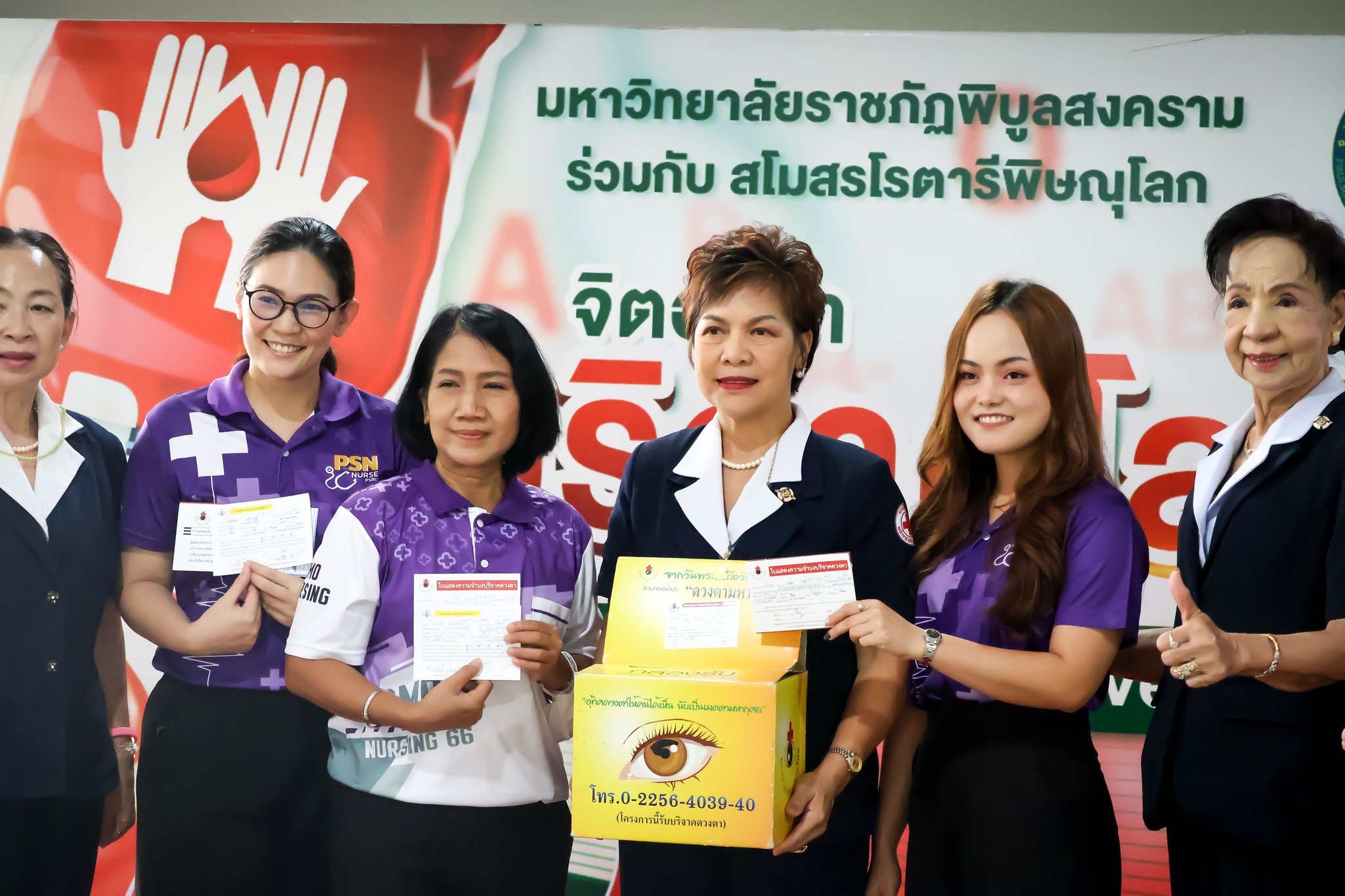 มหาวิทยาลัยราชภัฏพิบูลสงคราม ร่วมกับสโมสรโรตารีพิษณุโลก จัดกิจกรรมรับริจาคโลหิต เป้าหมายคือ 1 ล้านซีซีเพื่อมอบแก่ ธนาคารเลือด โรงพยาบาลพุทธชินราช พิษณุโลก ยอดรวมล่าสุด 16 ต.ค. 66 ทั้งสิ้น 910,570 CC (รวมยอดผู้บริจาคดวงตา 57 ราย – อวัยวะ 59 ราย)