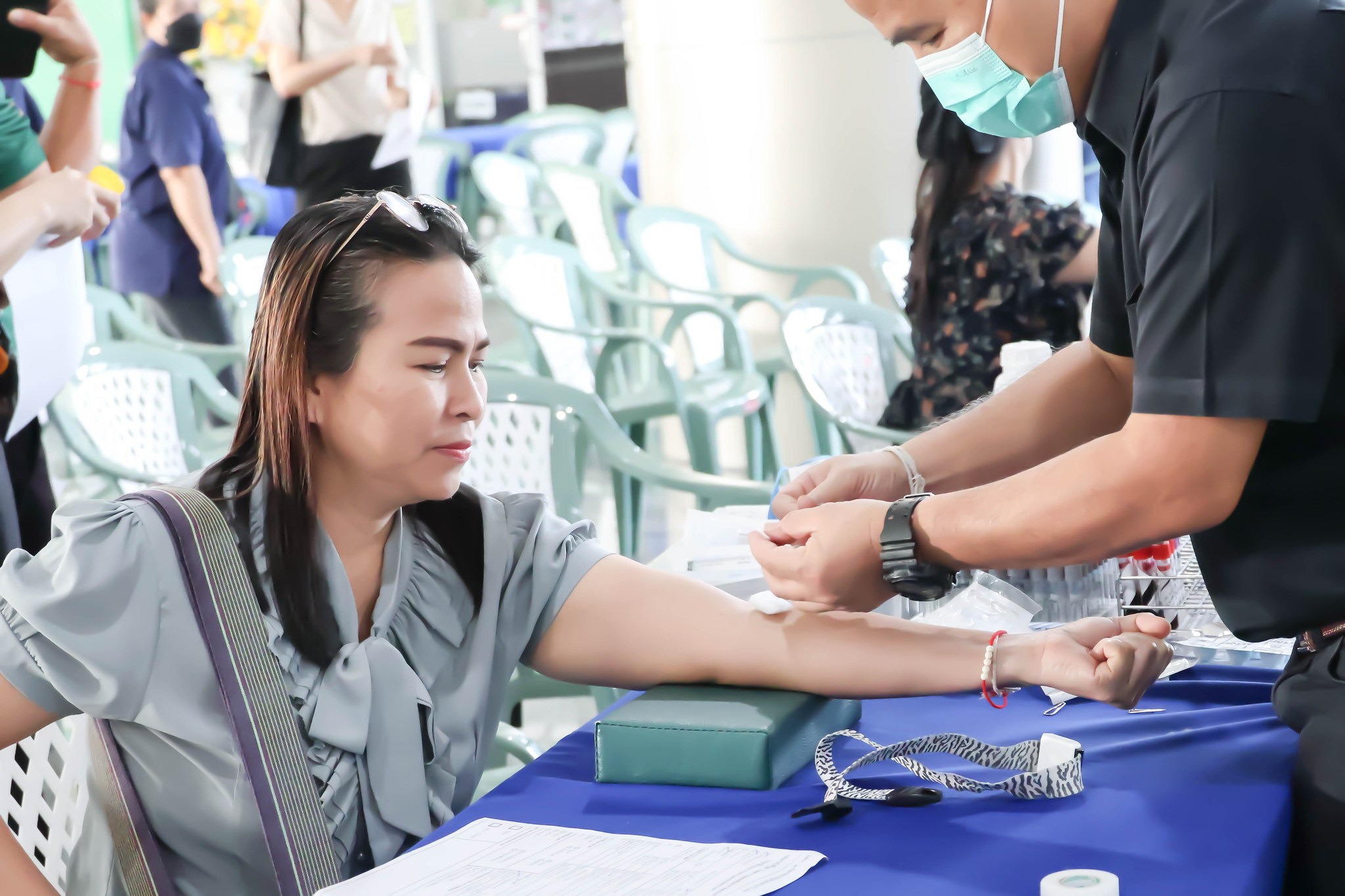 วันที่ 18 ต.ค. 66 กองพัฒนานักศึกษา มหาวิทยาลัยราชภัฏพิบูลสงคราม จัดบริการตรวจสุขภาพอาจารย์ เจ้าหน้าที่ บุคลากร ประจำปี 2566 รอบสิทธิ์ประกันสังคม ณ โถงกลาง อาคารทีปวิชญ์ มรพส. ส่วนทะเลแก้ว
