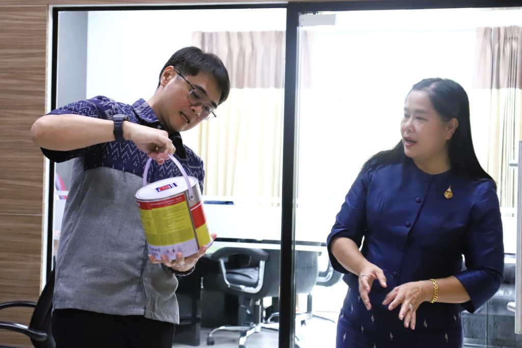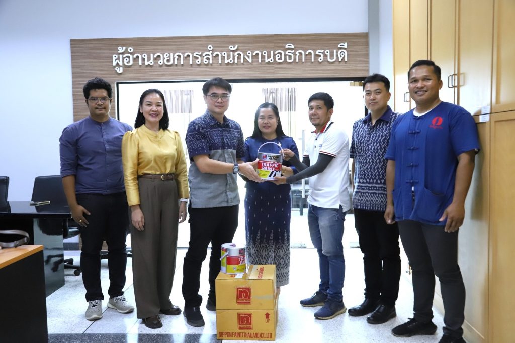 มหาวิทยาลัยราชภัฏพิบูลสงคราม นำโดย ผศ.ดร.บัญชา ศรีสมบัติ รองอธิการบดีฝ่ายโครงสร้างพื้นฐานและสารสนเทศ พร้อมด้วย ผอ.ประนอม หาญจริง ผู้อำนวยการสำนักงานอธิการบดี รับมอบสีนิปปอน เพนต์ (NIPPON PAINT) รุ่น TRAFFIC PAINT สีสำหรับงานจราจร จากผู้แทนจำหน่ายผลิตภัณฑ์สีนิปปอนเพนต์ เพื่อใช้ในโครงการส่งเสริมนักศึกษาทำงานระหว่างเรียน ร่วมสนับสนุนการปรับปรุงภูมิทัศน์ของมหาวิทยาลัยฯ ต่อไป มหาวิทยาลัยราชภัฏพิบูลสงคราม ขอขอบคุณผู้สนับสนุนฯ มา ณ โอกาสนี้