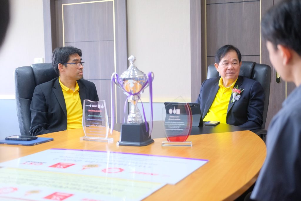 ผศ.ดร.ชุมพล เสมาขันธ์ อธิการบดีมหาวิทยาลัยราชภัฏพิบูลสงคราม ชื่นชมนักศึกษาสาขาวิชาวิศวกรรมโยธา คณะเทคโนโลยีอุตสาหกรรม ที่สร้างชื่อเสียงและความภาคภูมิใจแก่มหาวิทยาลัย ในโอกาสได้รับรางวัลรองชนะเลิศอันดับที่ 2 การแข่งขันคอนกรีตมวลเบา ระดับอุดมศึกษา ครั้งที่ 18 ซึ่งเป็นเวทีการแข่งขันระดับประเทศ (8 ก.ย. 68)