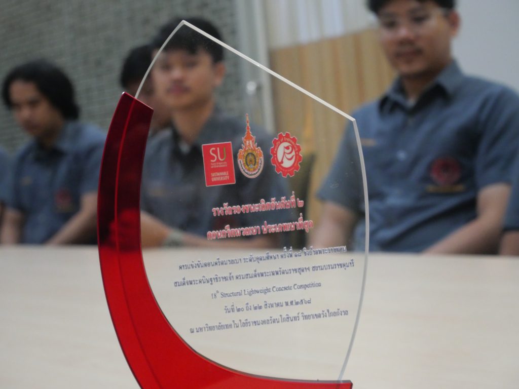 สำหรับการแข่งขัน “18th Structural Lightweight Concrete Competition” ซึ่งเป็นการแข่งขันคอนกรีตมวลเบาระดับอุดมศึกษา ชิงถ้วยพระราชทานสมเด็จพระกนิษฐาธิราชเจ้า กรมสมเด็จพระเทพรัตนราชสุดาฯ สยามบรมราชกุมารี จัดขึ้นที่มหาวิทยาลัยเทคโนโลยีราชมงคลรัตนโกสินทร์ วิทยาเขตวังไกลกังวล