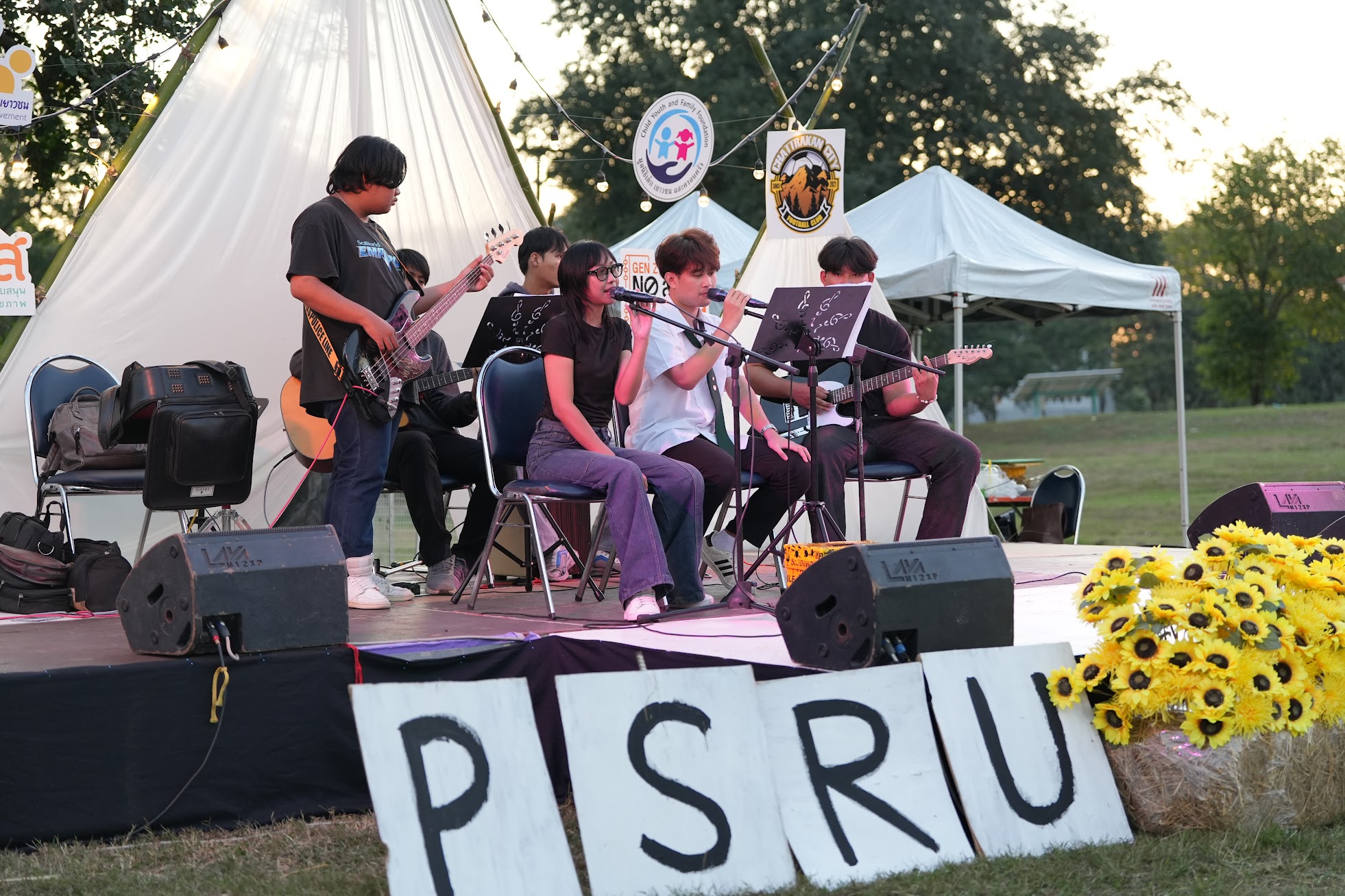 วันอังคารที่ 16 ธันวาคม 2568 มหาวิทยาลัยราชภัฏพิบูลสงคราม ร่วมกับ สภานักศึกษา ซึ่งเป็นแกนนำหลักในการจัดกิจกรรม ได้เนรมิตพื้นที่สีเขียวจัดงาน “PSRU Camping : เพื่อน พี่น้องกัน จอยได้ ไม่ต้องดื่ม!” ณ ลานแคมปิ้ง สวนรัชมังคลาภิเษก กองพัฒนานักศึกษา กิจกรรมนี้จัดขึ้นภายใต้โครงการเครือข่ายมหาวิทยาลัยรู้เท่าทันแอลกอฮอล์ โดยมีวัตถุประสงค์เพื่อสร้างพื้นที่สร้างสรรค์ให้นักศึกษาได้มาร่วมสนุกและเรียนรู้การใช้ชีวิตที่สดใสโดยปราศจากเครื่องดื่มแอลกอฮอล์ ซึ่งได้รับความสนใจจากนักศึกษาเข้าร่วมกิจกรรมเป็นจำนวนมาก ภายในงานเต็มไปด้วยบรรยากาศอันอบอุ่นและกิจกรรมสุดครีเอทีฟมากมาย อาทิ Campfire Talk ล้อมวงเล่าล้อมวงคุย, Creative Workshop งานทำมือ, Camping Café & Food, มุมถ่ายภาพ Share ความประทับใจ และการแสดงดนตรี Acoustic Folk Songs รับลมหนาว ซึ่งนอกจากรอยยิ้มและความสนุกสนานแล้ว ยังมีการสอดแทรกสาระความรู้ผ่านบทเพลง เพื่อสร้างการรับรู้และความเข้าใจเกี่ยวกับการรู้เท่าทันแอลกอฮอล์ให้แก่นักศึกษาอีกด้วย