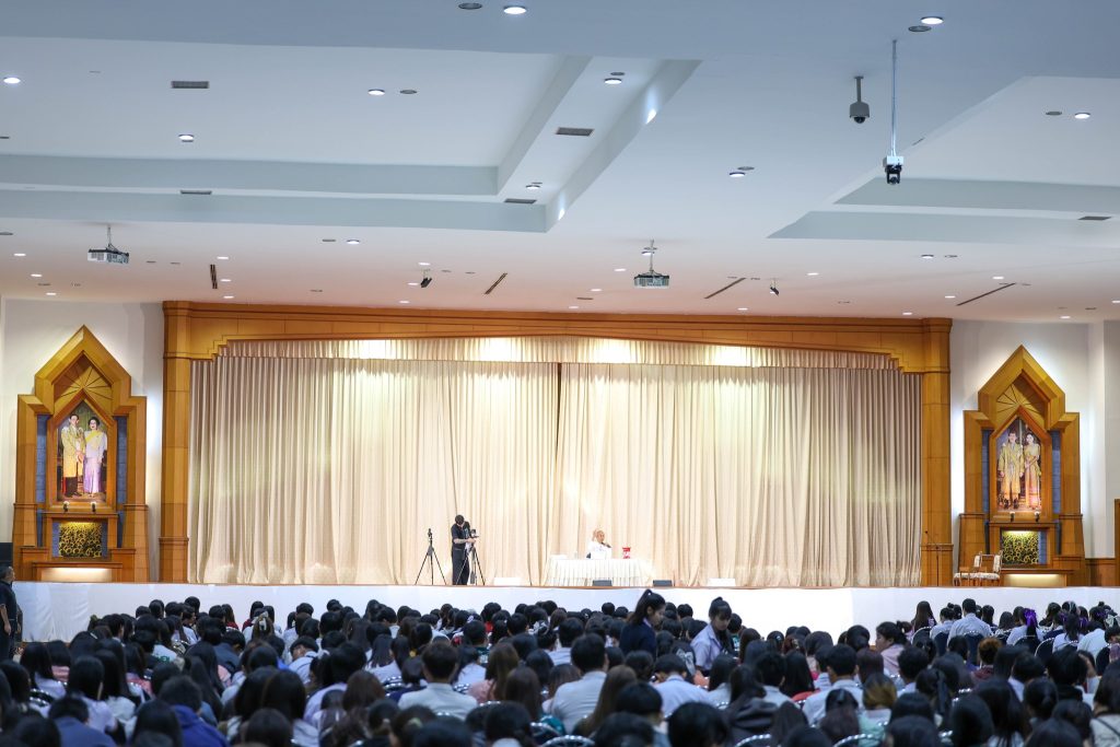 ประชาชน และ นักศึกษามหาวิทยาลัยราชภัฏพิบูลสงคราม ร่วมรับฟังธรรมบรรยายพิเศษ “เงินทองของบาดใจ” โดย "อาจารย์เบียร์ คนตื่นธรรม"