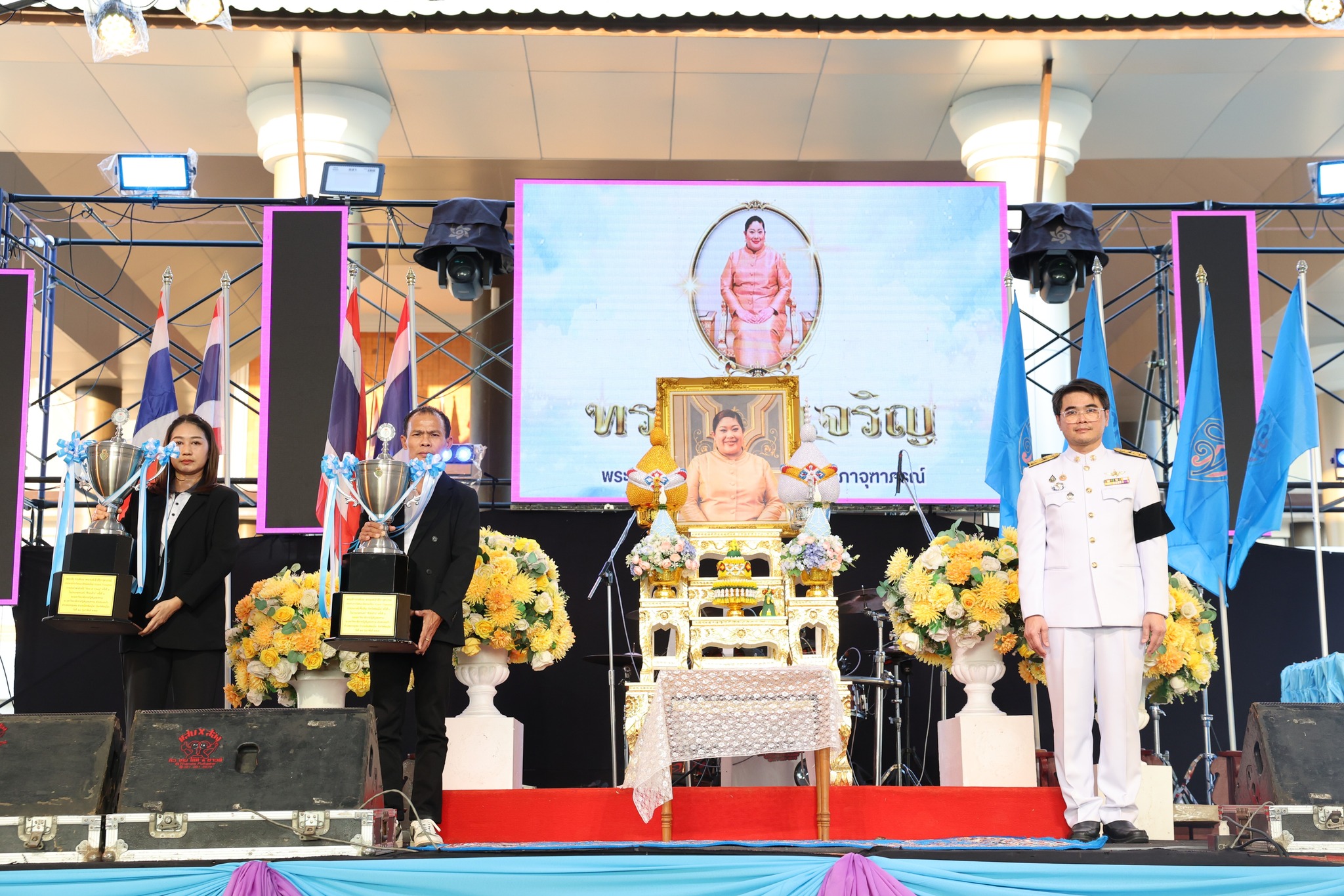 ปิดฉากประทับใจ – มหาวิทยาลัยราชภัฏพิบูลสงคราม จัดพิธีมอบถ้วยรางวัลประทานจากพระเจ้าวรวงศ์เธอ พระองค์เจ้าสิริภาจุฑาภรณ์ แก่ผู้ชนะเลิศการประกวดกล้วยไม้ Best of Chang และการประกวดไก่พื้นเมือง ภายในงานเกษตรแฟร์ “ศึกชนช้าง” ครั้งที่ 4 ณ บริเวณเวทีด้านหน้าหอประชุมศรีวชิรโชติ เมื่อวันที่ 28 กุมภาพันธ์ 2569