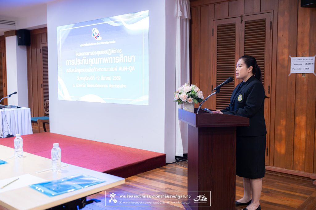 วันที่ 12 มีนาคม 2569 งานบริการการศึกษาและพัฒนาวิชาการ (งานบัณฑิตศึกษา) จัดโครงการประชุมเชิงปฏิบัติการการประกันคุณภาพการศึกษาระดับหลักสูตรบัณฑิตศึกษา ตามเกณฑ์ AUN-QA เครือข่ายมหาวิทยาลัยราชภัฏภาคเหนือ ณ ห้องประชุมผาไท ชั้น 1 โรงแรมเวียงลคอร อำเภอเมือง จังหวัดลำปาง โดยได้รับเกียรติจาก ผศ.ดร.ปิยวรรณ ศุภวิทิตพัฒนา ประธานคณะกรรมเครือข่ายบัณฑิตศึกษา มหาวิทยาลัยราชภัฏภาคเหนือ และผู้ช่วยอธิการบดีฝ่ายมาตรฐานวิชาการ มหาวิทยาลัยราชภัฏพิบูลสงคราม เป็นประธานในพิธีเปิด และเป็นวิทยากรบรรยายในหัวข้อ “การประกันคุณภาพการศึกษาระดับหลักสูตรบัณฑิตศึกษาตามเกณฑ์ AUN-QA” รศ.ดร.พรชนก ทองลาด หัวหน้างานบัณฑิตศึกษา และคณะกรรมการเครือข่ายบัณฑิตศึกษา มหาวิทยาลัยราชภัฏภาคเหนือ กล่าวรายงานวัตถุประสงค์การจัดโครงการ โดยมีคณาจารย์และบุคลากรด้านบัณฑิตศึกษา เครือข่ายมหาวิทยาลัยราชภัฏภาคเหนือทั้ง 8 แห่ง เข้าร่วมกว่า 44 คน โอกาสนี้ ผศ.สุวรรณี รองอธิการบดีฝ่ายวิชาการ ให้เกียรติกล่าวต้อนรับ ผู้เข้าร่วมโครงการ