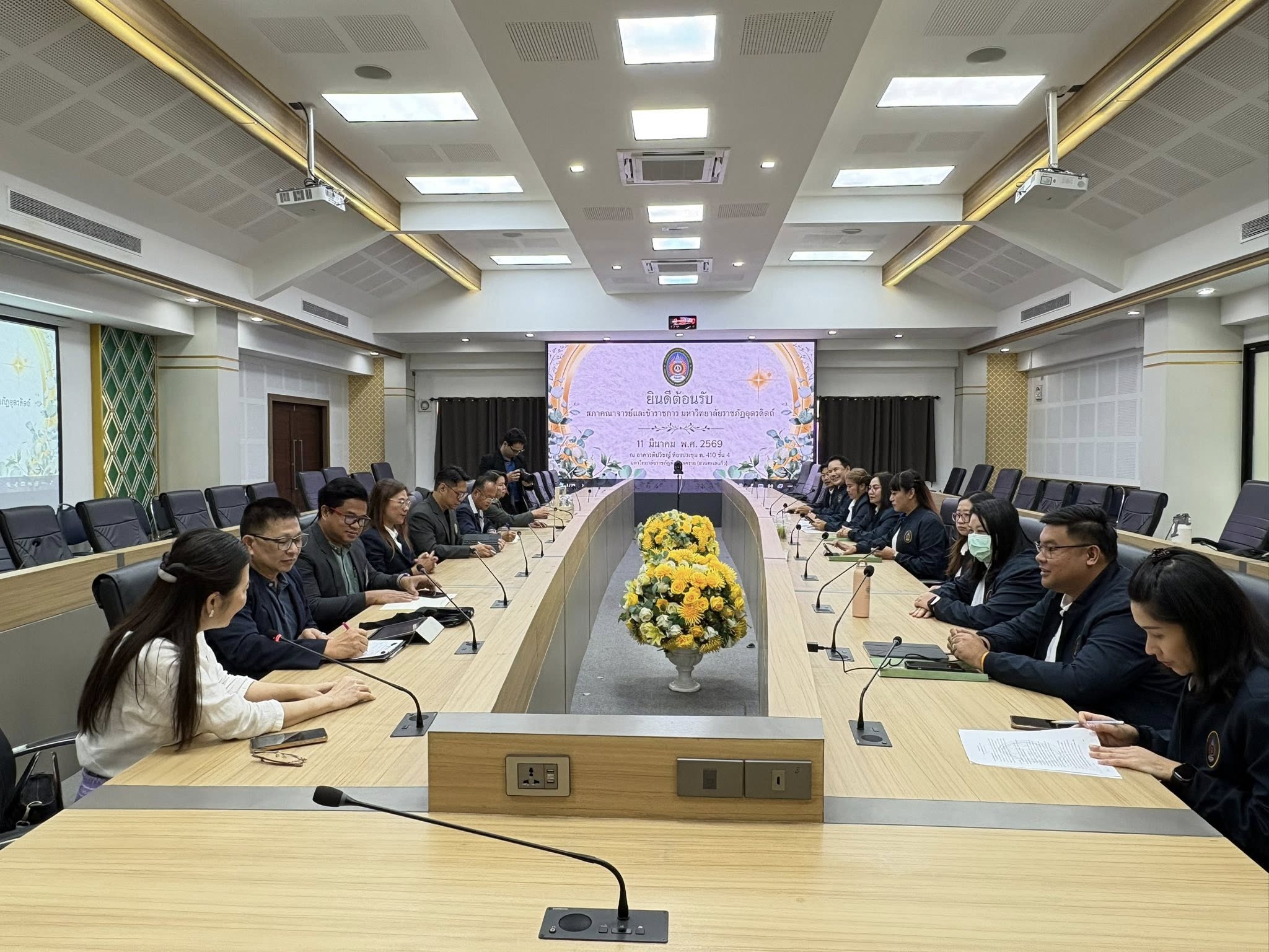 เมื่อวันที่ 11 มีนาคม 2569 อาจารย์กมลทิพย์ เดชะปรากรม ประธานสภาคณาจารย์และข้าราชการ มหาวิทยาลัยราชภัฏพิบูลสงคราม พร้อมคณะกรรมการบริหารสภาคณาจารย์ฯ ให้การต้อนรับคณะศึกษาดูงานจากสภาคณาจารย์และข้าราชการ มหาวิทยาลัยราชภัฏอุตรดิตถ์ อย่างอบอุ่นและเป็นกัลยาณมิตร… เพื่อแลกเปลี่ยนเรียนรู้ (Knowledge Sharing) เกี่ยวกับบทบาท ภารกิจ และแนวทางการดำเนินงานของสภาคณาจารย์และข้าราชการของทั้งสองสถาบัน โดยครอบคลุมถึงการส่งเสริมสวัสดิการ การปกป้องสิทธิประโยชน์ของบุคลากร และการทำหน้าที่เป็นกลไกสำคัญในการขับเคลื่อนและสนับสนุนการบริหารงานของมหาวิทยาลัยให้เกิดประสิทธิภาพสูงสุด… ตลอดจนร่วมกันยกระดับมาตรฐานการศึกษาของมหาวิทยาลัยราชภัฏให้เติบโตเคียงคู่สังคมต่อไปอย่างยั่งยืน