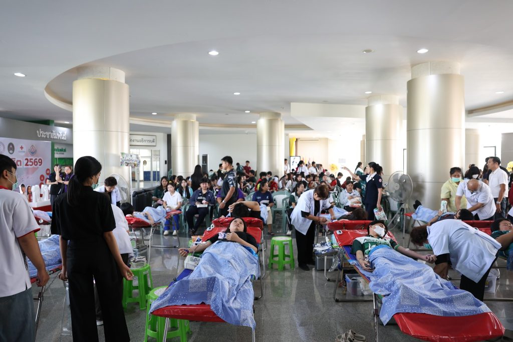 วันที่ 11 มีนาคม 2569 บรรยากาศการเปิดรับบริจาคโลหิตเต็มไปด้วยความอบอุ่นและพลังแห่งความเสียสละ โดยได้รับความร่วมมือจากคณาจารย์ บุคลากร นักศึกษา และประชาชนทั่วไป ส่งผลให้มียอดผู้เข้าร่วมบริจาคโลหิตรวมทั้งสิ้น 306 ราย ได้รับปริมาณโลหิตรวมสูงถึง 122,400 ซีซี และ มีผู้จิตศรัทธาร่วมแสดงความจำนงบริจาคดวงตาจำนวน 192 ราย และบริจาคอวัยวะอีก 192 ราย