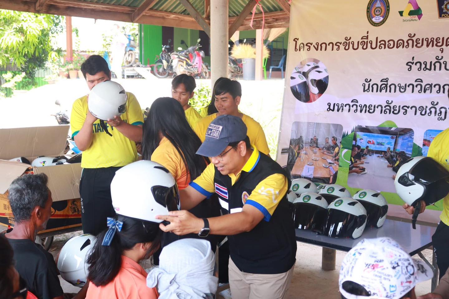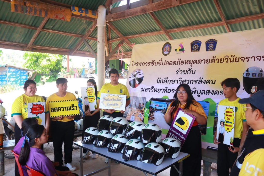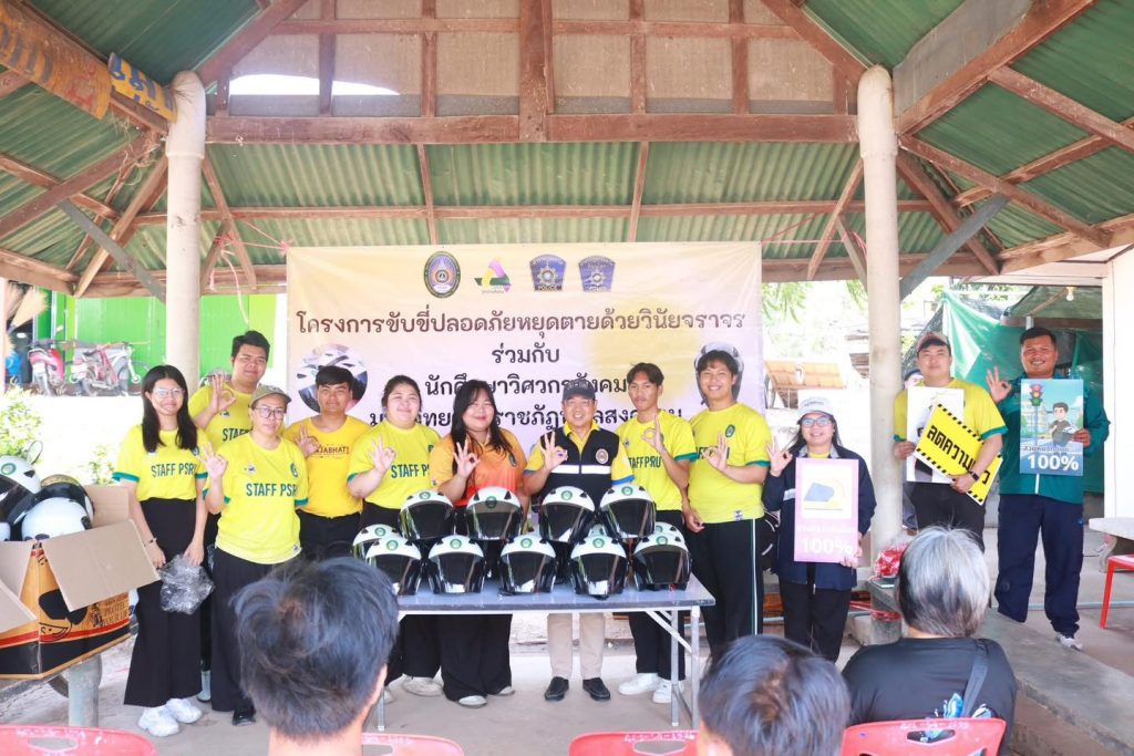 “วิศวกรสังคม มรภ.พิบูลสงคราม” ลงพื้นที่บางกระทุ่ม ขับเคลื่อนโมเดลความปลอดภัย มอบหมวกนิรภัยสร้างวินัยจราจร