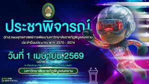 มหาวิทยาลัยราชภัฏพิบูลสงคราม จัดการประชุมประชาพิจารณ์ (ร่าง) แผนยุทธศาสตร์การพัฒนามหาวิทยาลัย ระยะ 5 ปี (พ.ศ. 2570 – 2574) เพื่อระดมสรรพกำลังสร้างกลไกการมีส่วนร่วม ออกแบบทิศทางมหาวิทยาลัยให้ตอบโจทย์บริบทโลกอนาคต ณ ห้องประชุม PIBUL 216 อาคารพิบูลวิชญ์ มรพส. เมื่อวันที่ 1 เมษายน 2569 ▫️ ผศ.ดร.ชุมพล เสมาขันธ์ อธิการบดีมหาวิทยาลัยราชภัฏพิบูลสงคราม เป็นประธานในพิธีเปิดโดยมีคณะผู้บริหาร บุคลากร-เจ้าหน้าที่ ผู้นำนักศึกษา ตลอดจนหัวหน้าส่วนราชการผู้มีส่วนได้ส่วนเสียเข้าร่วมอย่างพร้อมเพรียง เพื่อร่วมกันวิพากษ์ (PSRU Strategic Vote) และเสนอแนะแนวทางในการเปลี่ยนผ่านมหาวิทยาลัยไปสู่ยุคใหม่ที่เน้นความยั่งยืนและการสร้างผลกระทบเชิงบวกต่อสังคม ▫️ วิทยากร โดย ดร.ปิยะนิตย์ โอนพรัตน์วิบูล ผู้อำนวยการกองขับเคลื่อนและประเมินผลการพัฒนา สำนักงานสภาพัฒนาการเศรษฐกิจและสังคมแห่งชาติ มาเป็นวิทยากรบรรยายพิเศษในหัวข้อ “กรอบแผนแผนพัฒนาเศรษฐกิจและสังคมแห่งชาติ ฉบับที่ 14 และความเชื่อมโยงกับยุทธศาสตร์ระดับอุดมศึกษา” เพื่อสร้างความเข้าใจในทิศทางการพัฒนาระดับชาติร่วมกัน